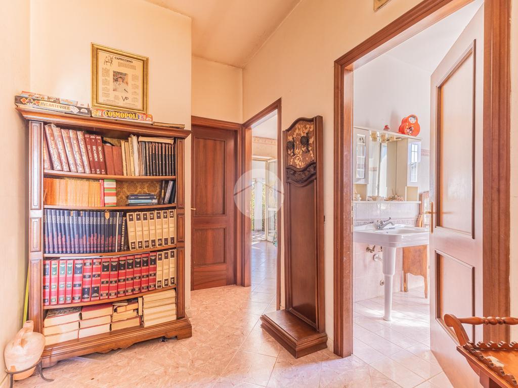L’ingresso si apre su un ampio salone doppio con camino, cuore della zona giorno, da cui si accede sia al bagno di servizio sia alla cucina abitabile, che a sua volta conduce al portico esterno, ideale per pranzi e cene all’aperto. Dal salone si raggiunge la zona notte, composta da due camere matrimoniali — una con terrazzo e l’altra con balcone — una cameretta e un bagno con vasca.